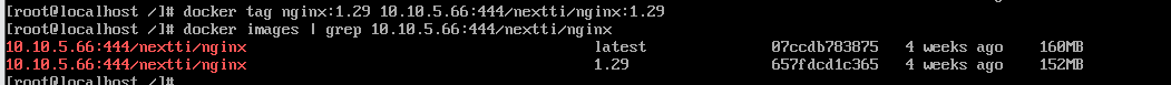 예를 들어, nginx:1.29 이미지를 harbor의 nextti라는 프로젝트 경로에 올리려고 한다면, 10.10.5.66:444/nextti/nginx로 변경해주어야 합니다.