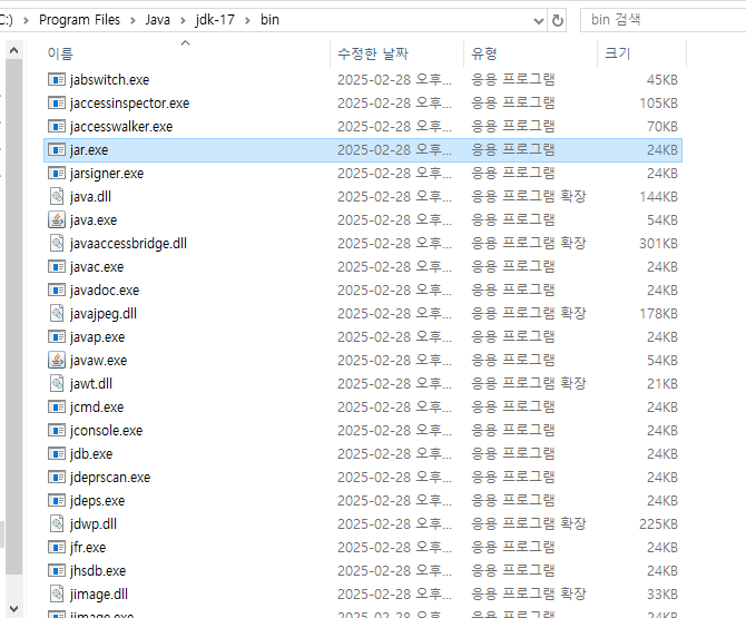 윈도우를 사용하는 경우 jdk를 다운 받은 뒤 jdk를 환경변수에 세팅을 해줘야 java, javac, jar와 같은 명령어를 사용할 수 있는것도 jdk 내부에 각 도구들이 포함되어있기 때문에 가능한 것입니다.
